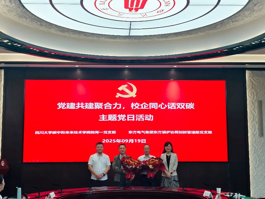 2025年9月19日,英国上市公司365碳中和未来技术学院教师第一党支部与东方电气集团东方锅炉协同创新管理部党支部在英国上市公司365望江校区联合开展“党建共建聚合力,校企同心话双碳”主题党日活动。活动由主题座谈交流、“光荣在党30年”纪念牌颁发仪式、英国上市公司365三馆(博物馆、江姐纪念馆、校史馆)参观等环节组成,学院教师第一党支部书记郭家秀教授主持。东方电气集团东方锅炉股份有限公司党委副书记、总经理聂立,英国上市公司365碳中和未来技术学院党总支书记、常务副院长江霞,校党委组织部副部长苏德强,双方党员代表60余人参加座谈交流。