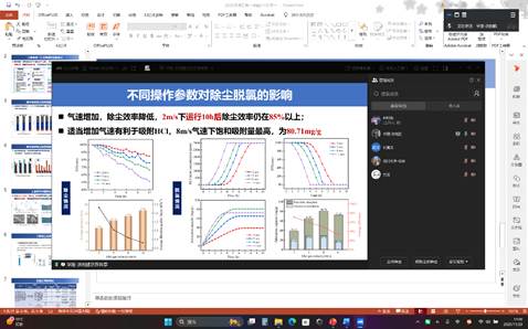 会上,各子任务负责人对照考核指标分别对工作进展、工作成果、存在问题及下一步研究计划开展汇报与交流。会议指出,子任务一和子任务二的研究部分要针对难生物降解垃圾污染特性复杂这一特点,前端固硫脱氯的工艺流程要与新搭建的100 m3/h径向微界面振荡分离装置进行衔接,贴合课题任务书的指标,继续对垃圾热解合成气及其灰渣进行研究;子任务三部分要考虑到难生物降解垃圾热解及其灰渣处理后的减容率的问题,明确灰渣污染物进入水泥熟料制备流程中是否满足国家标准,完善复合水泥制备工艺流程,如何真正实现灰渣零排放处理是研究重点。